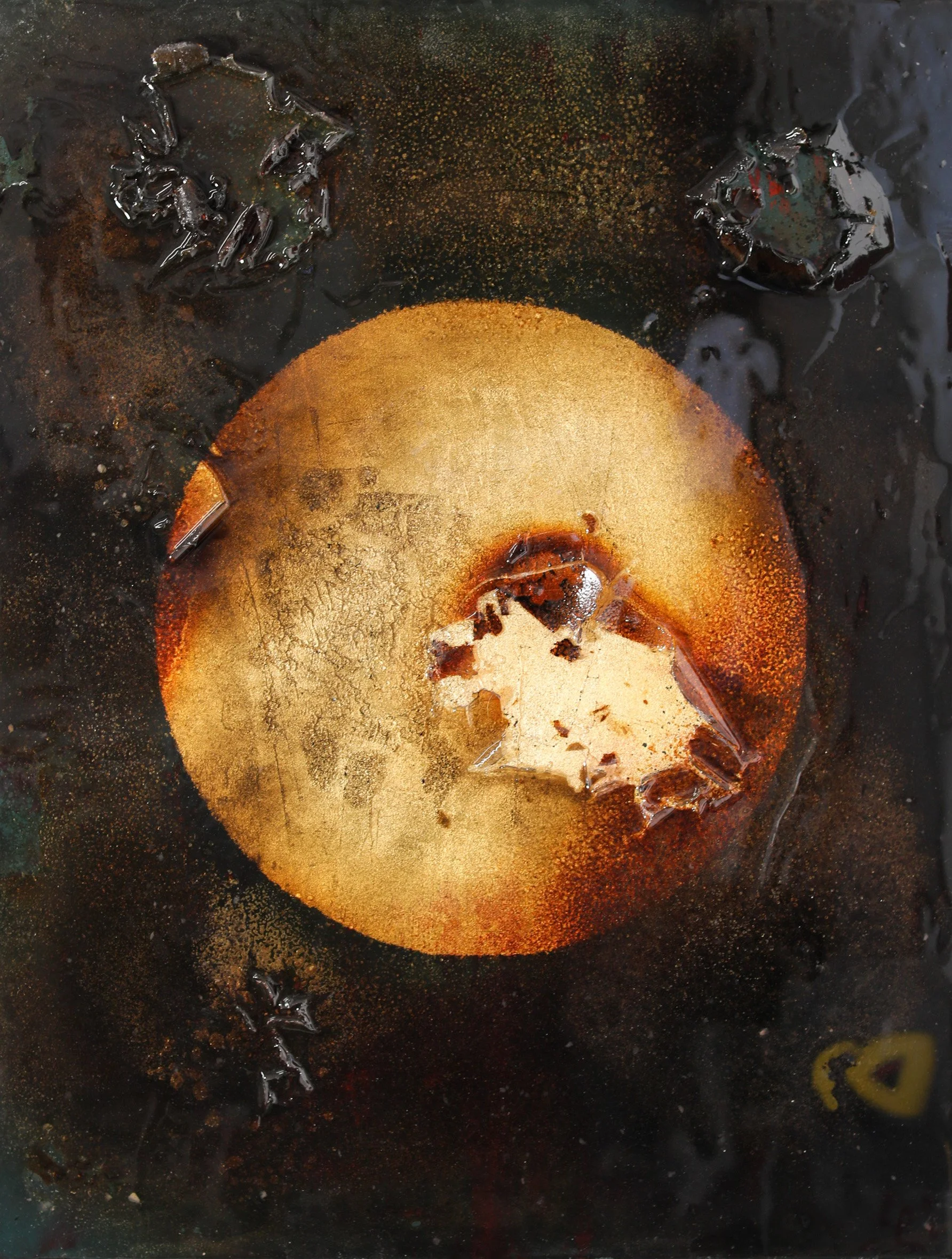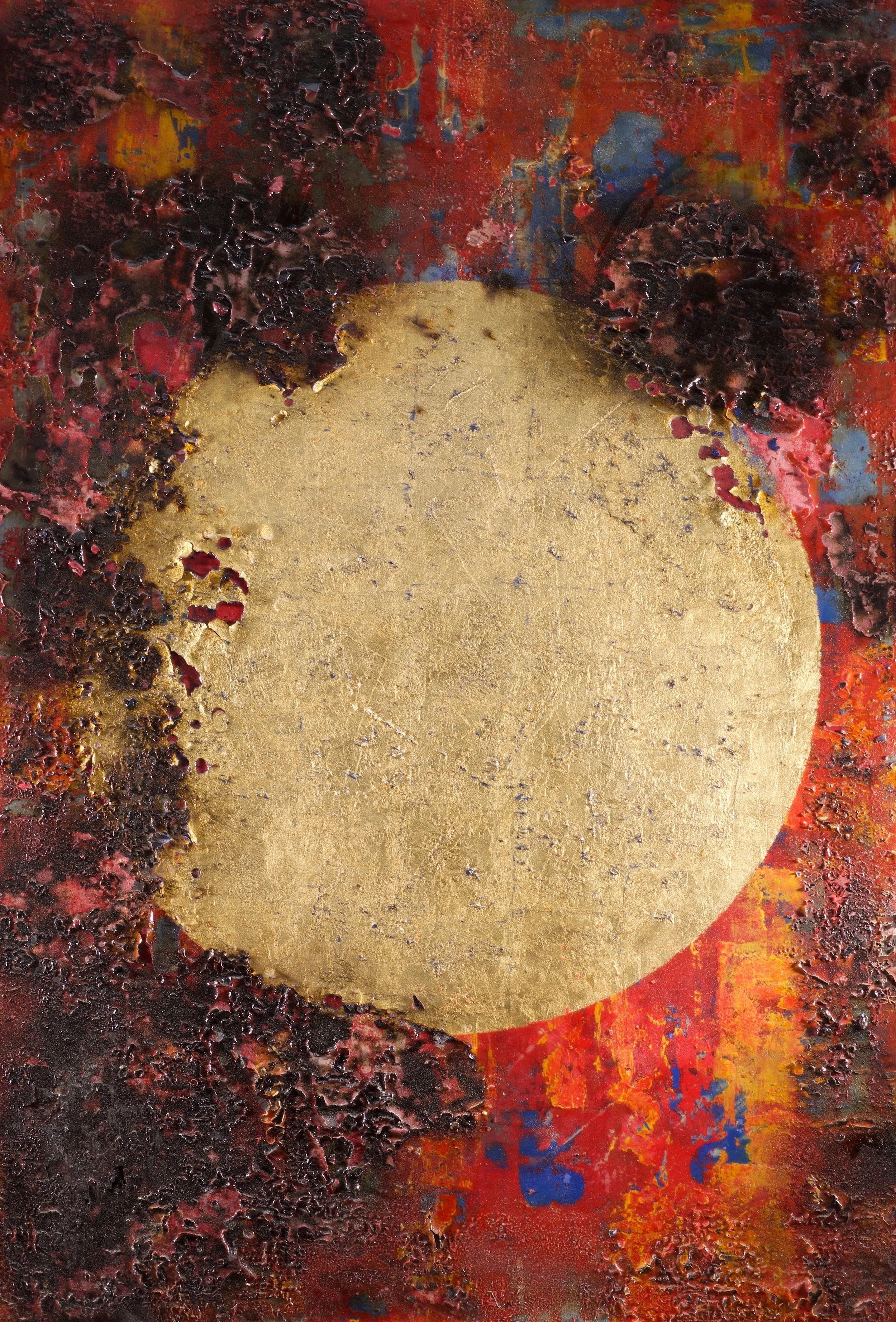 The planet series is an artistic and spiritual view of the universe. Planets are used as a symbol of life. The use of gold leaves illustrates its value and its connection to the universe.
